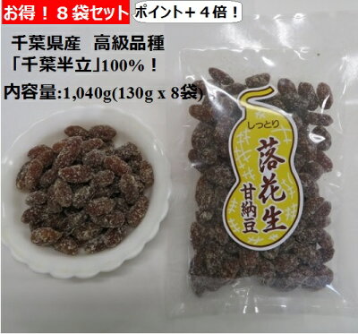 【お得!8袋パック(1,040g)】千葉県産落花生の中でも定番の高級品種『千葉半立』を100%使用、しっとり、柔らかく煮あげた美味しい甘納豆です! 【ピーナッツ 豆菓子 ギフト 千葉 国産】