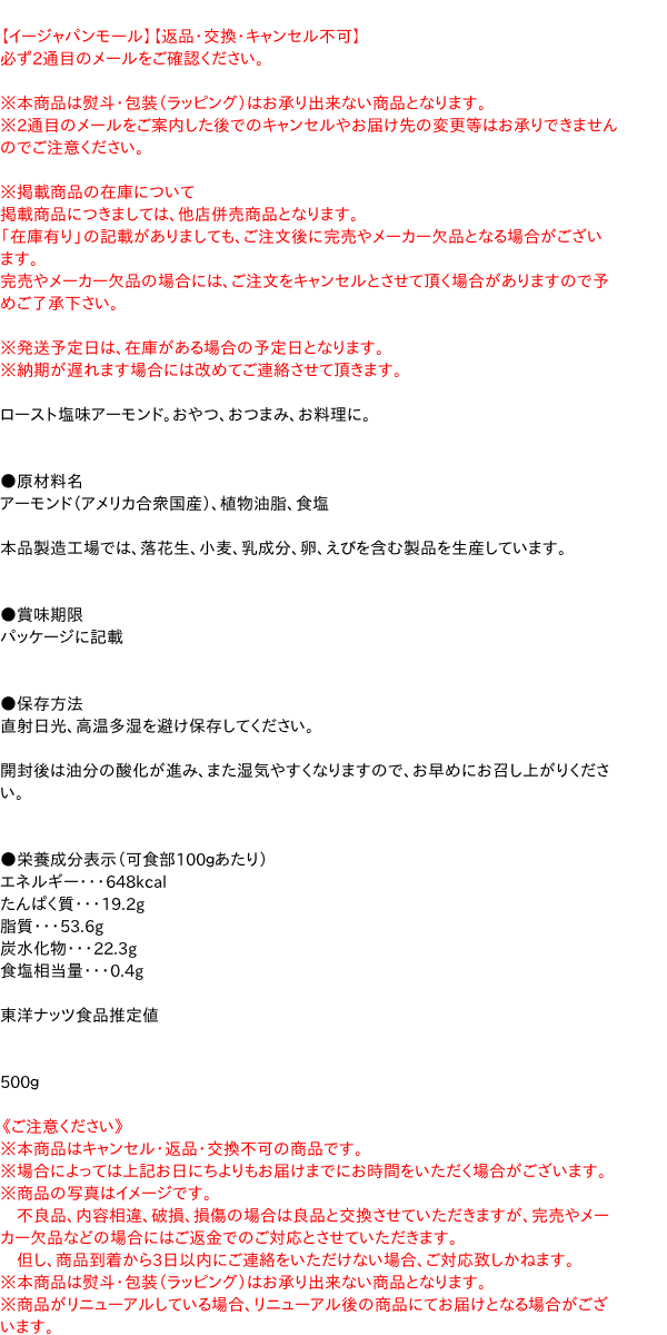 [関連キーワード:食品 お菓子 アーモンド アメリカ 健康 お菓子 料理 トッピング 塩 業務用]まとめ買いはコチラ(激安ケース) >>【イージャパンショッピングモール】内のみのお買い物は、送料一律でどれだけ買っても同梱する事が出来ます。