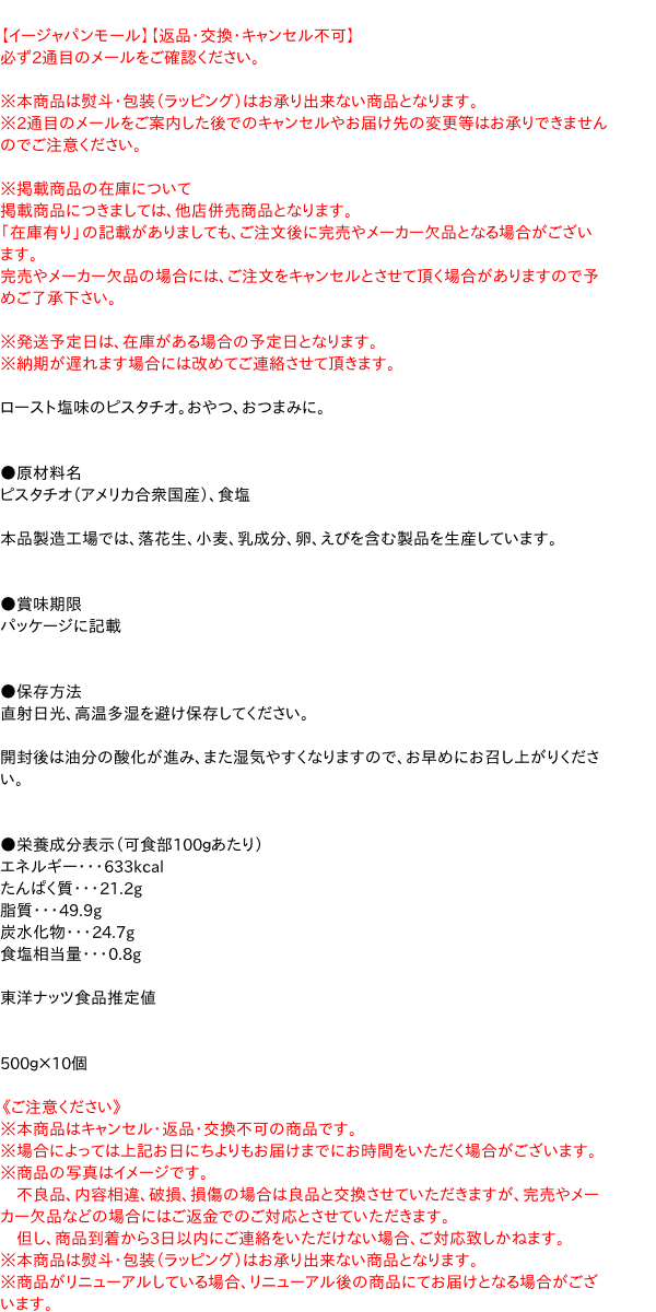 【送料無料】★まとめ買い★ TON’S ピスタチオ 500g ×10個【イージャパンモール】
