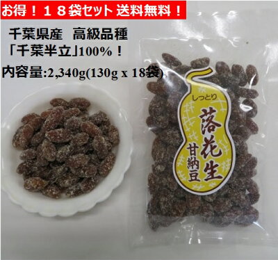 【送料無料!お得!18袋パック(2,340g)】千葉県産落花生の中でも定番の高級品種『千葉半立』を100%使用、しっとり、柔らかく煮あげた美味しい甘納豆です! 【ピーナッツ 豆菓子 ギフト 千葉 国産】