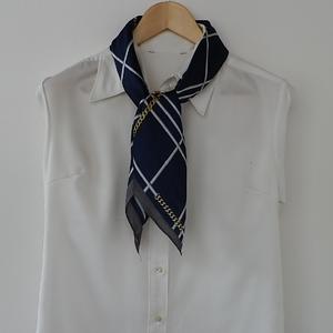 1000円ポッキリ スカーフ スカーフ柄 チェック&チェーン柄 シンプル ネイビー 訳あり商品 大特価